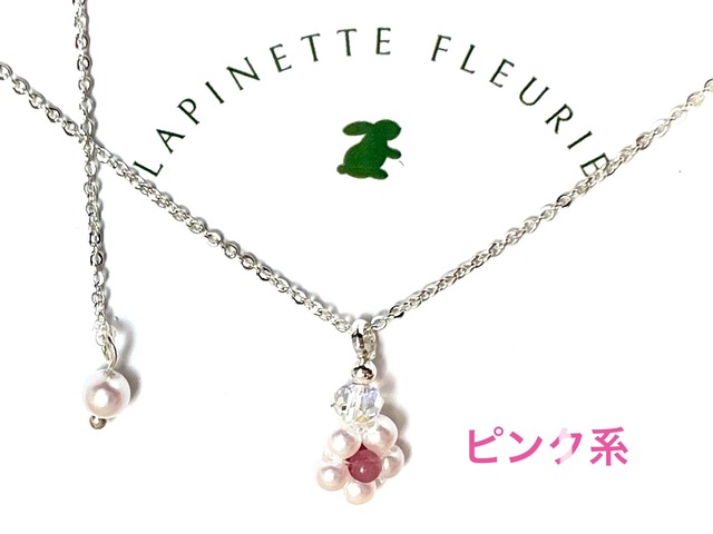 花びらにパールをあしらった小花のネックレスです。花びらに使っているパールの直径は3ミリで、さりげなく胸元を飾ります。 使いやすさにこだわり、パールは首に負担のかからないけど発色の良いABS樹脂製で、ほんのり桜色がアコヤ天然真珠のような風合いを出してくれています。私のお気に入り素材の1つです。 チェーンは銅にシルバー925をメッキしてあるので、こちらもキレイな上、丈夫なのが優秀ポイント。35〜43センチに長さ調整が可能なので、お洋服のデザインに合わせやすいんです。 留め具も引っ掛けるタイプではなく、差し込んで留め、押して外すタイプなので、フックタイプの留め具より、ずっと楽に着脱できますよ。