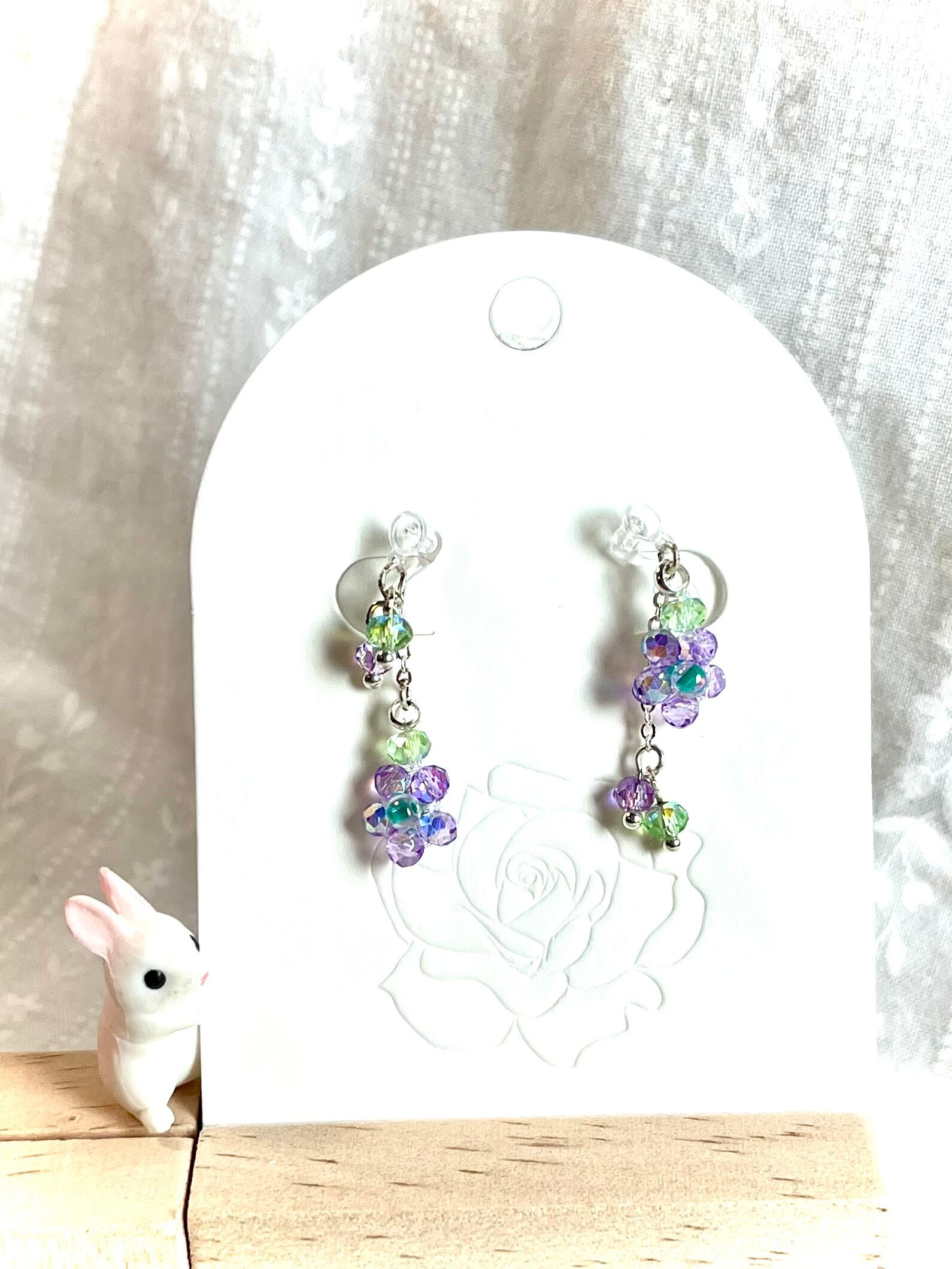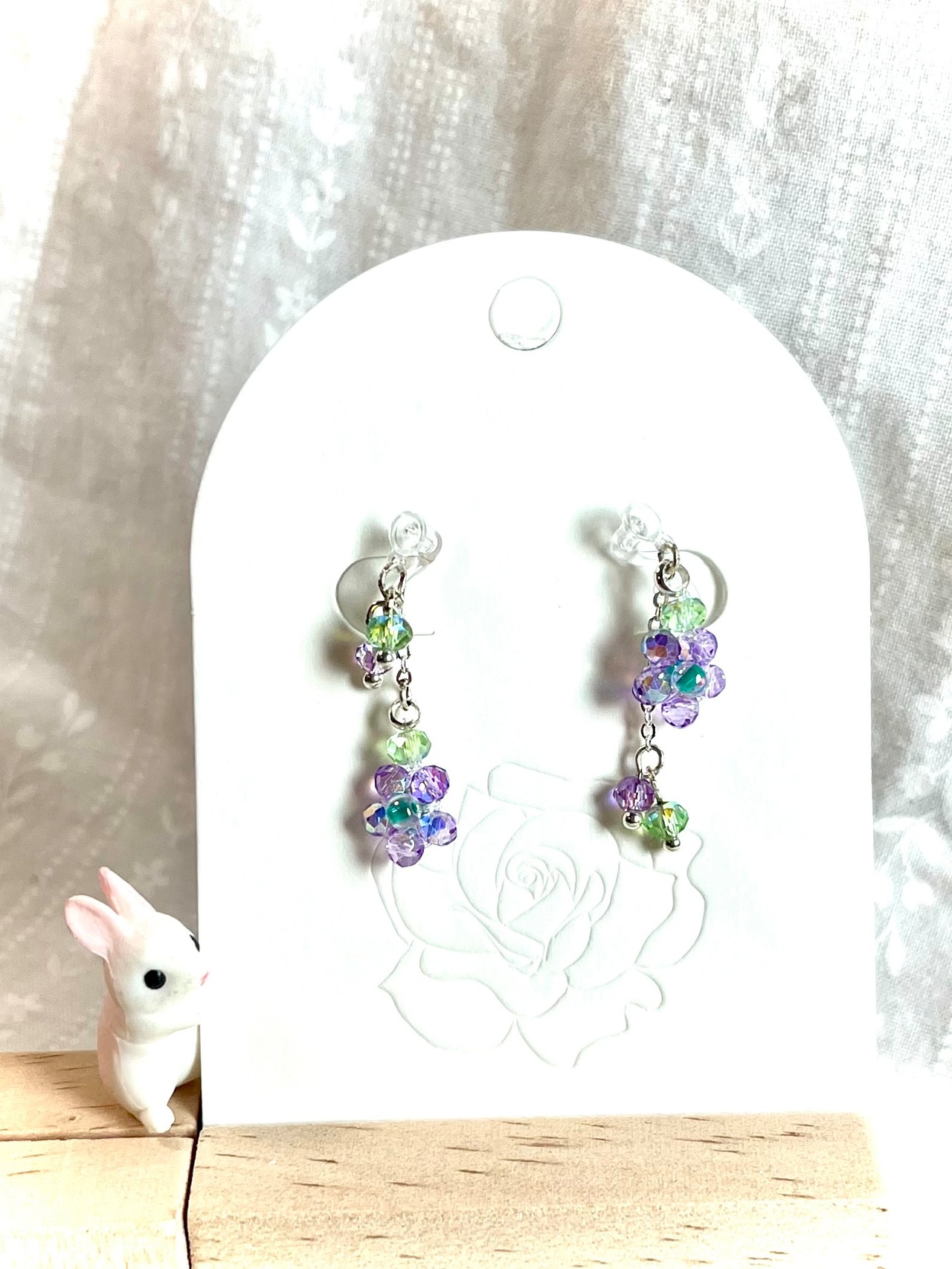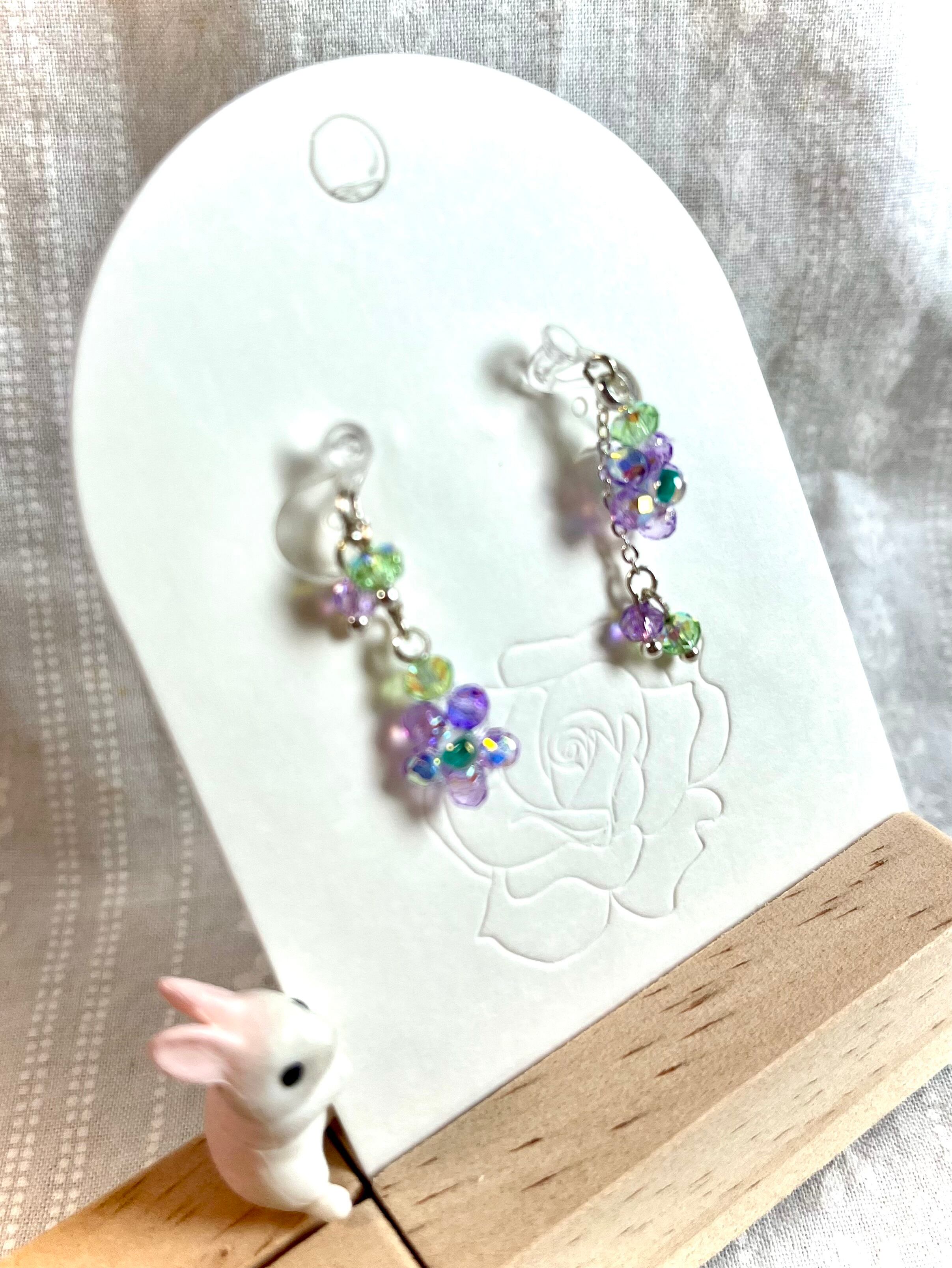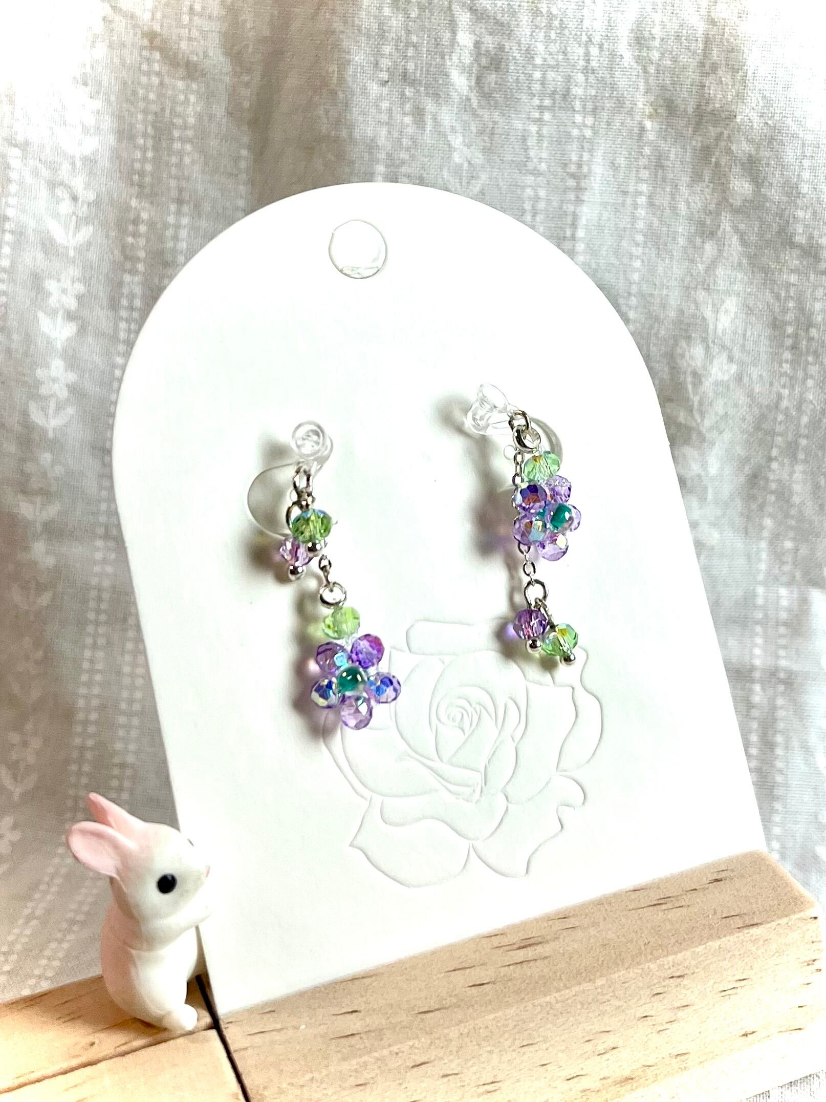 きらきら紫小花ノンホールピアス(花とつぼみ)