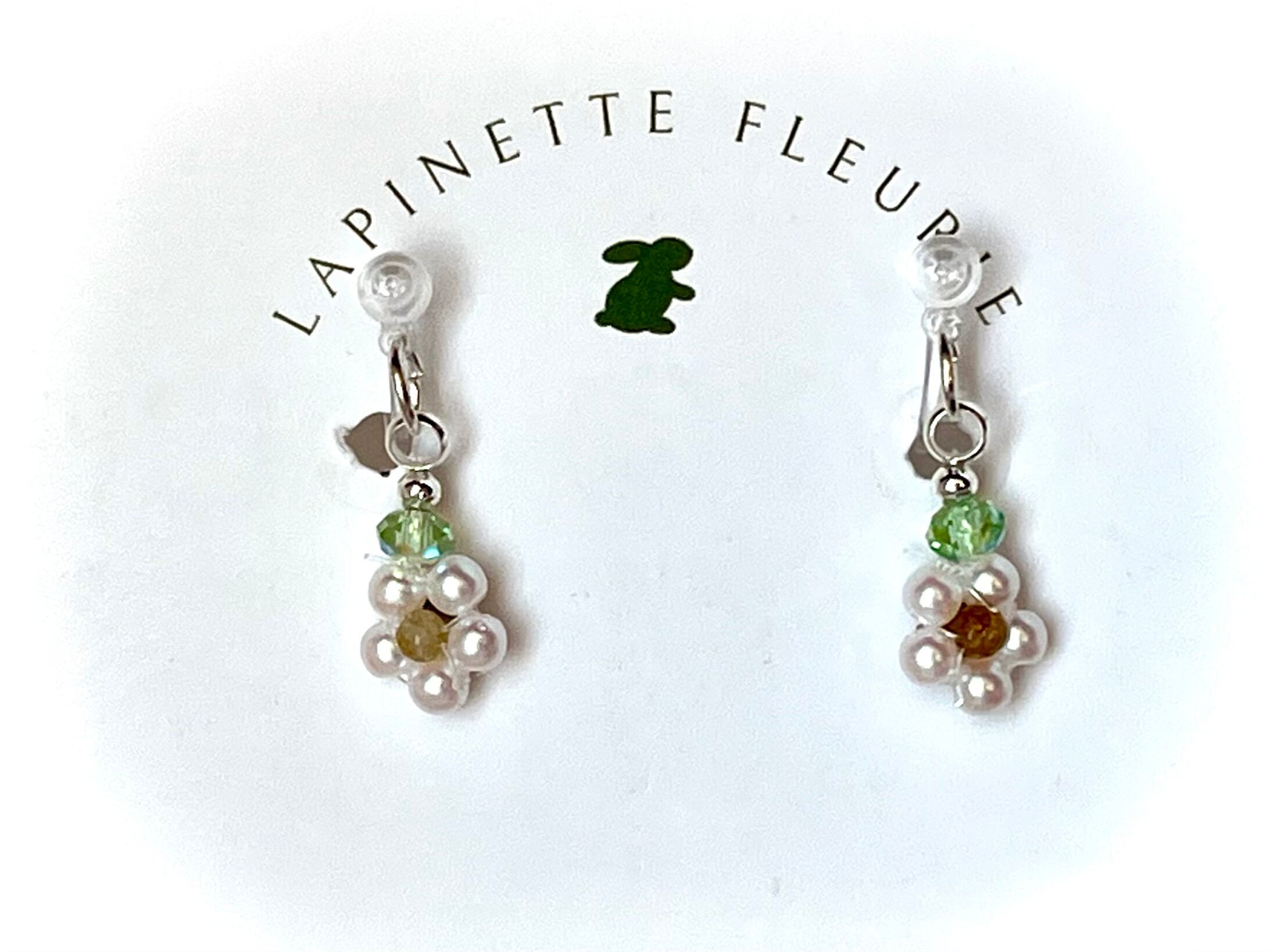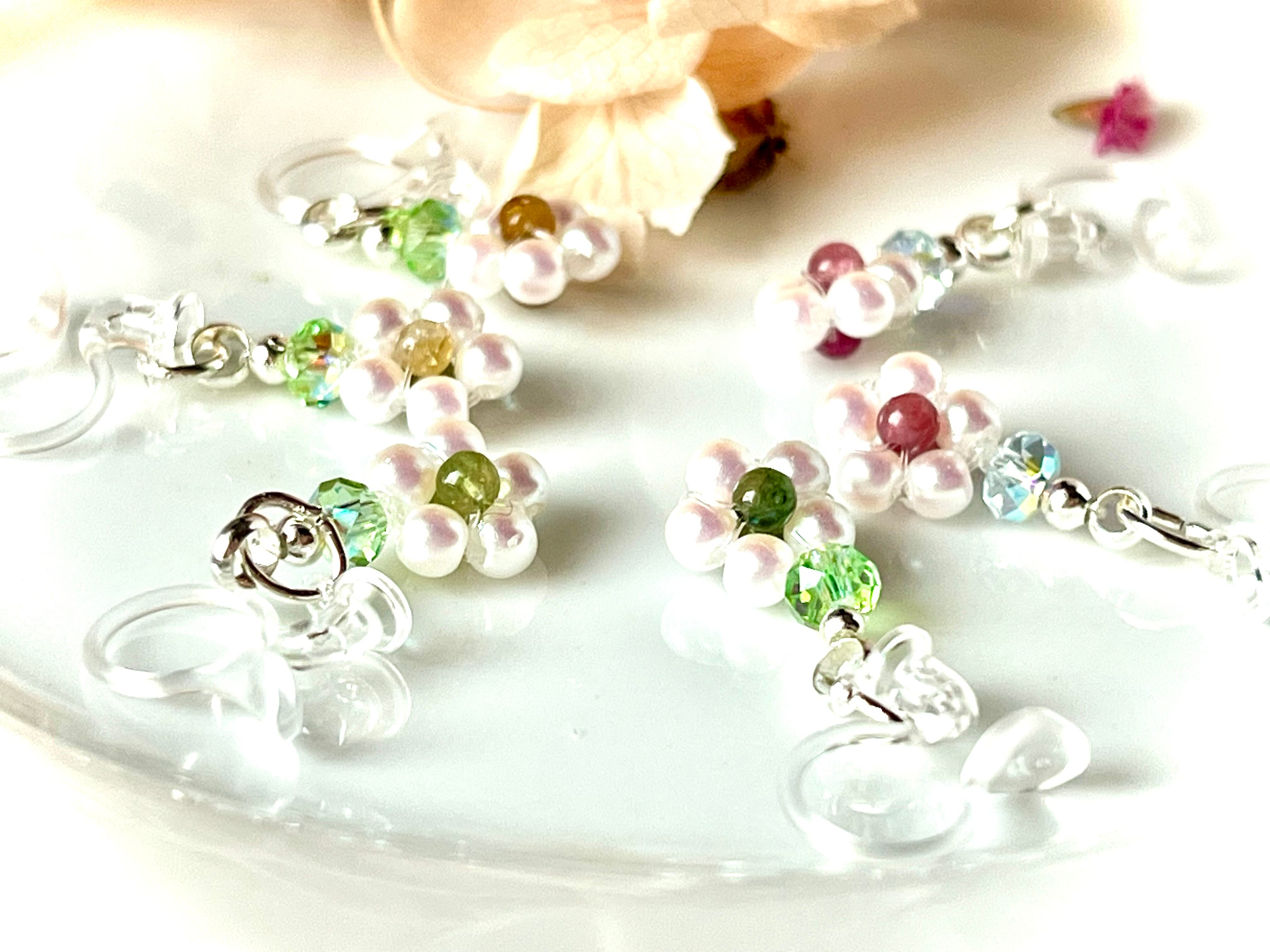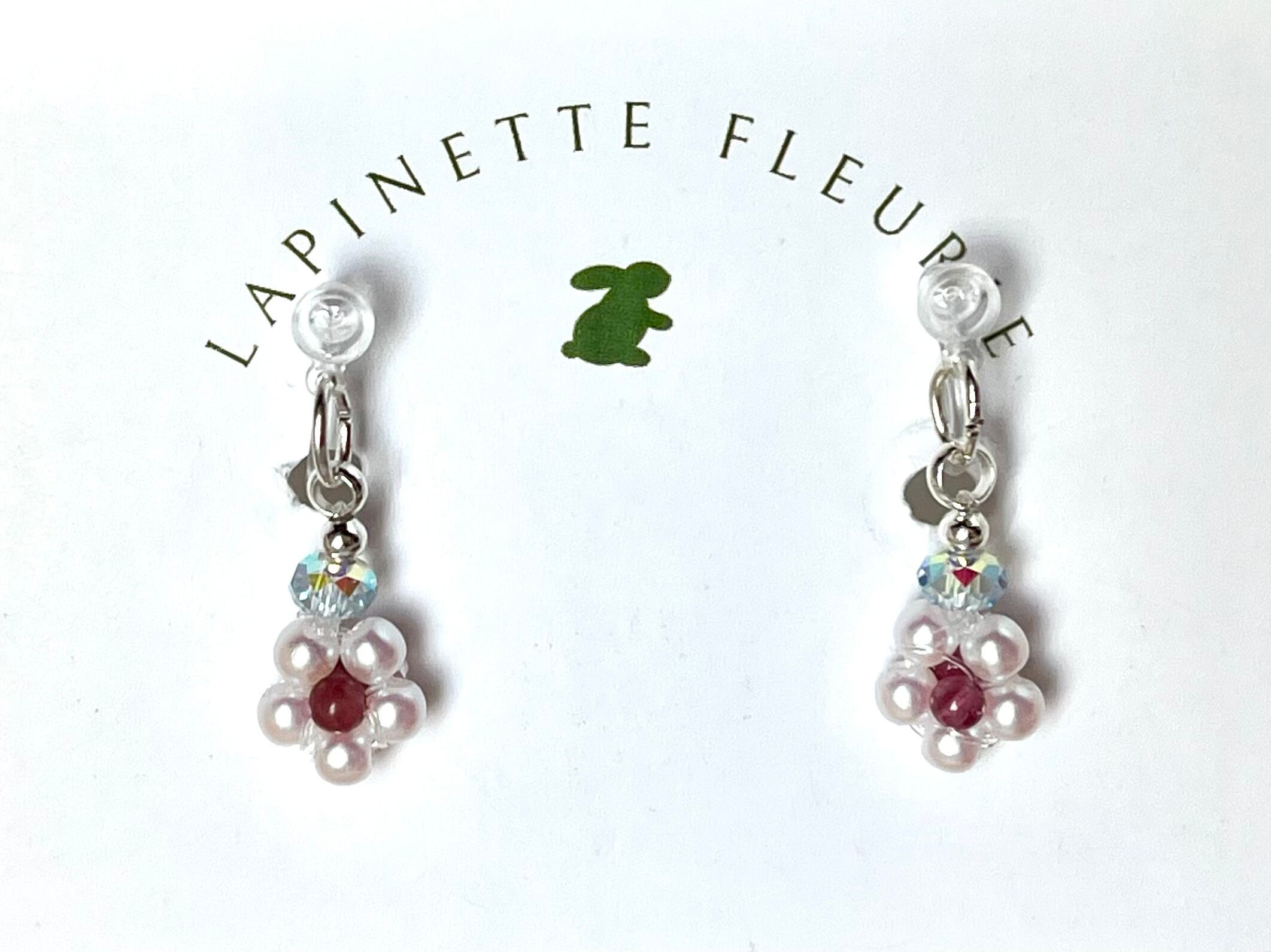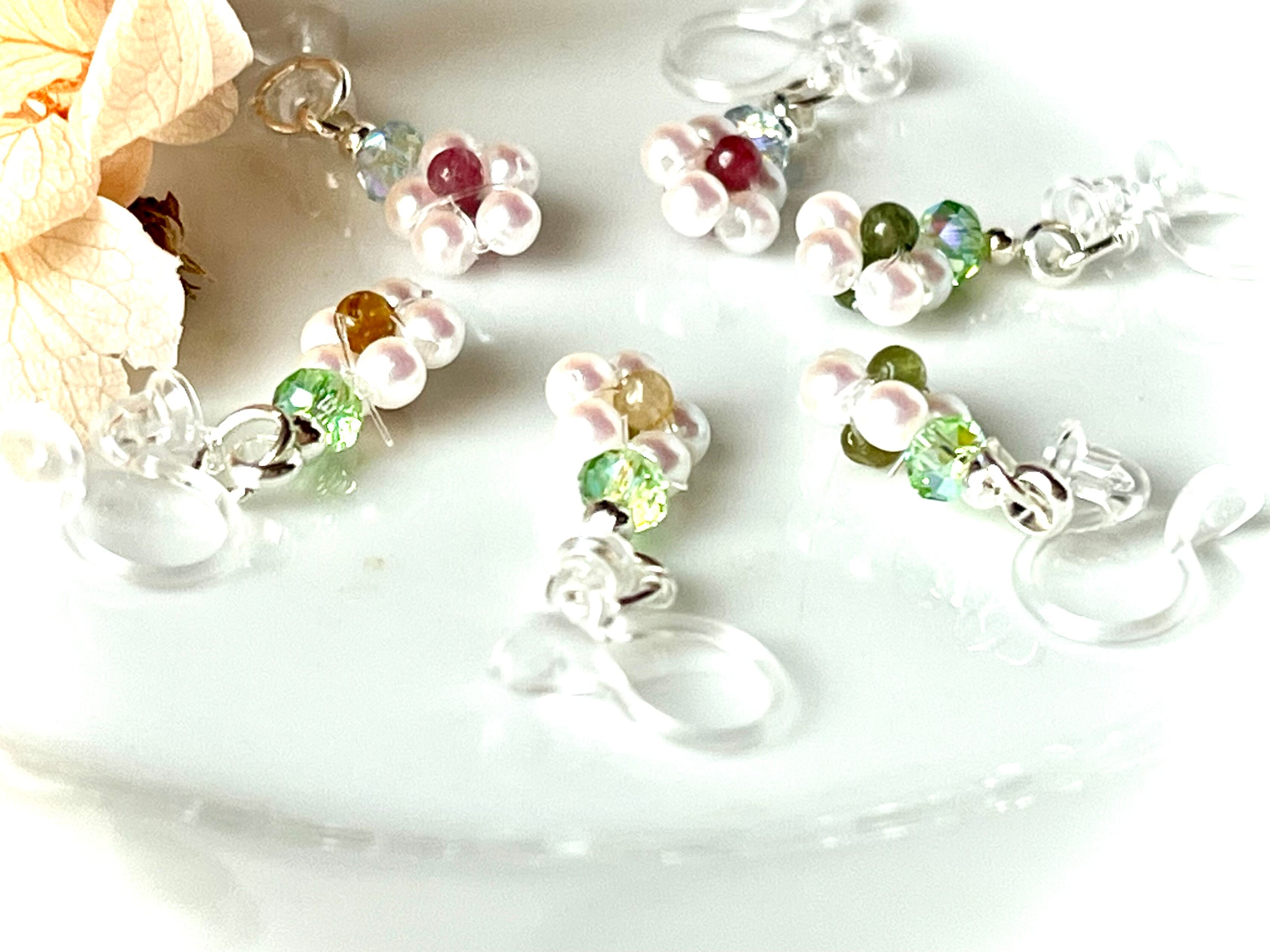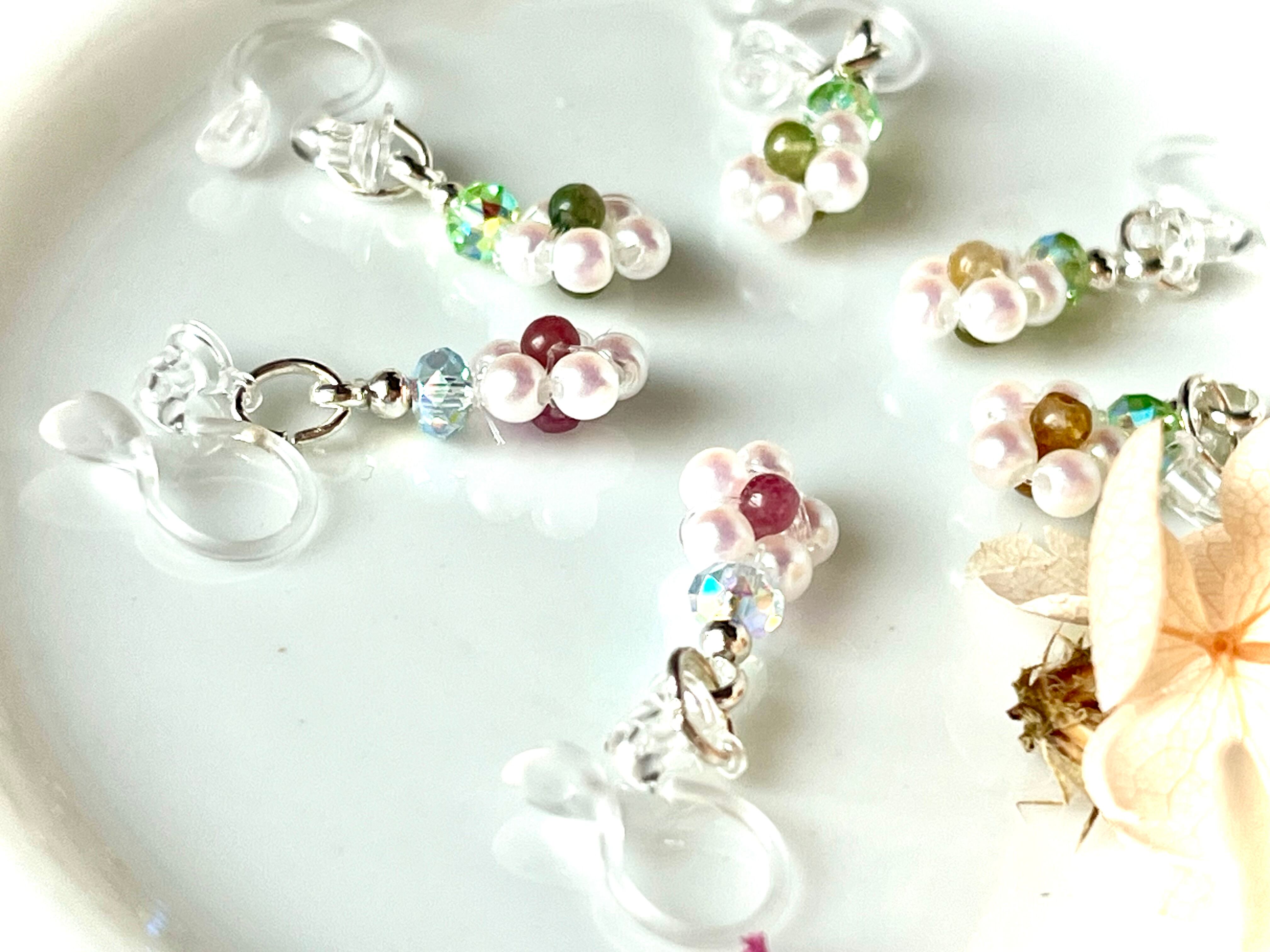 碧玺とパールで表現した小さな花が、控えめなきらめきで表情を明るく見せてくれます。主張しすぎず、装いに自然となじむデザインは、オフィスにも日常のカジュアルにも心地よく寄り添います。