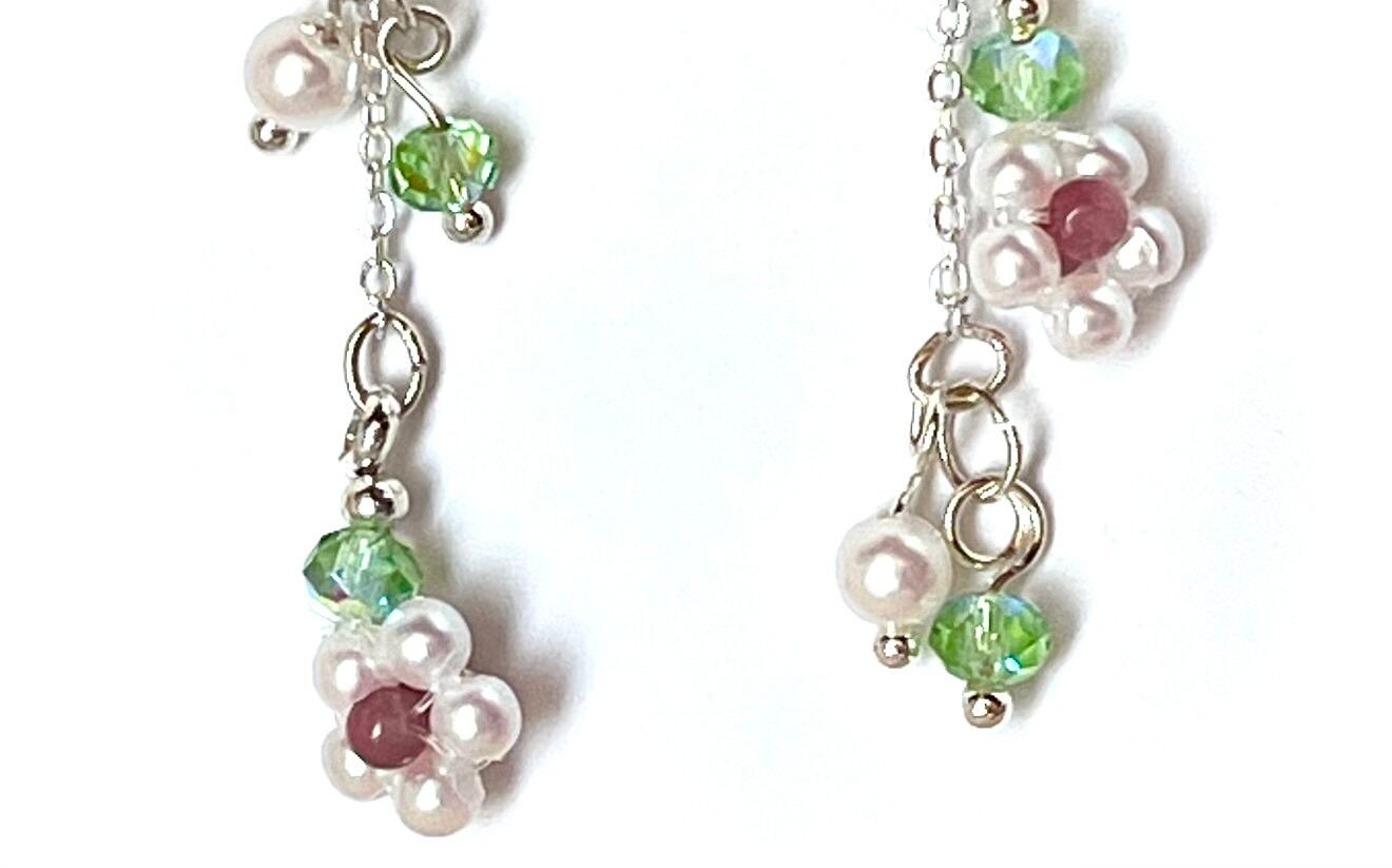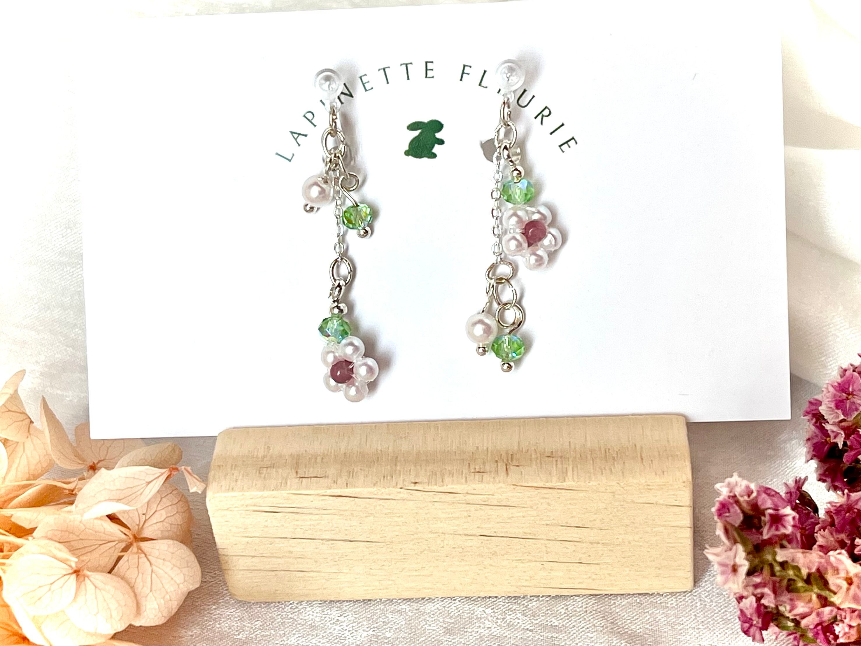 碧玺の小花ノンホールピアス(花とつぼみ)